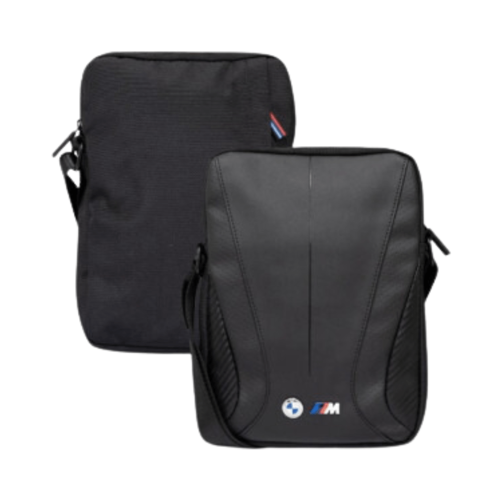 De BMW M Carbon & Leather Tablettas is een veelzijdige en stijlvolle metgezel voor drukke levensstijlen. Deze hoogwaardige tablettas combineert het moderne ontwerp van carbonvezel met duurzaam nylon, waardoor een perfecte balans tussen elegantie en functionaliteit ontstaat. Met voldoende ruimte voor een tablet, accessoires en andere benodigdheden, biedt de BMW M-Line Tablettas een georganiseerde oplossing voor onderweg. Of het nu zakelijk gebruik is of gewoon voor persoonlijk plezier, deze tas voegt een vleugje luxe toe aan elke dagelijkse routine en is een must-have voor BMW-liefhebbers die op zoek zijn naar kwaliteit en stijl in hun accessoires.