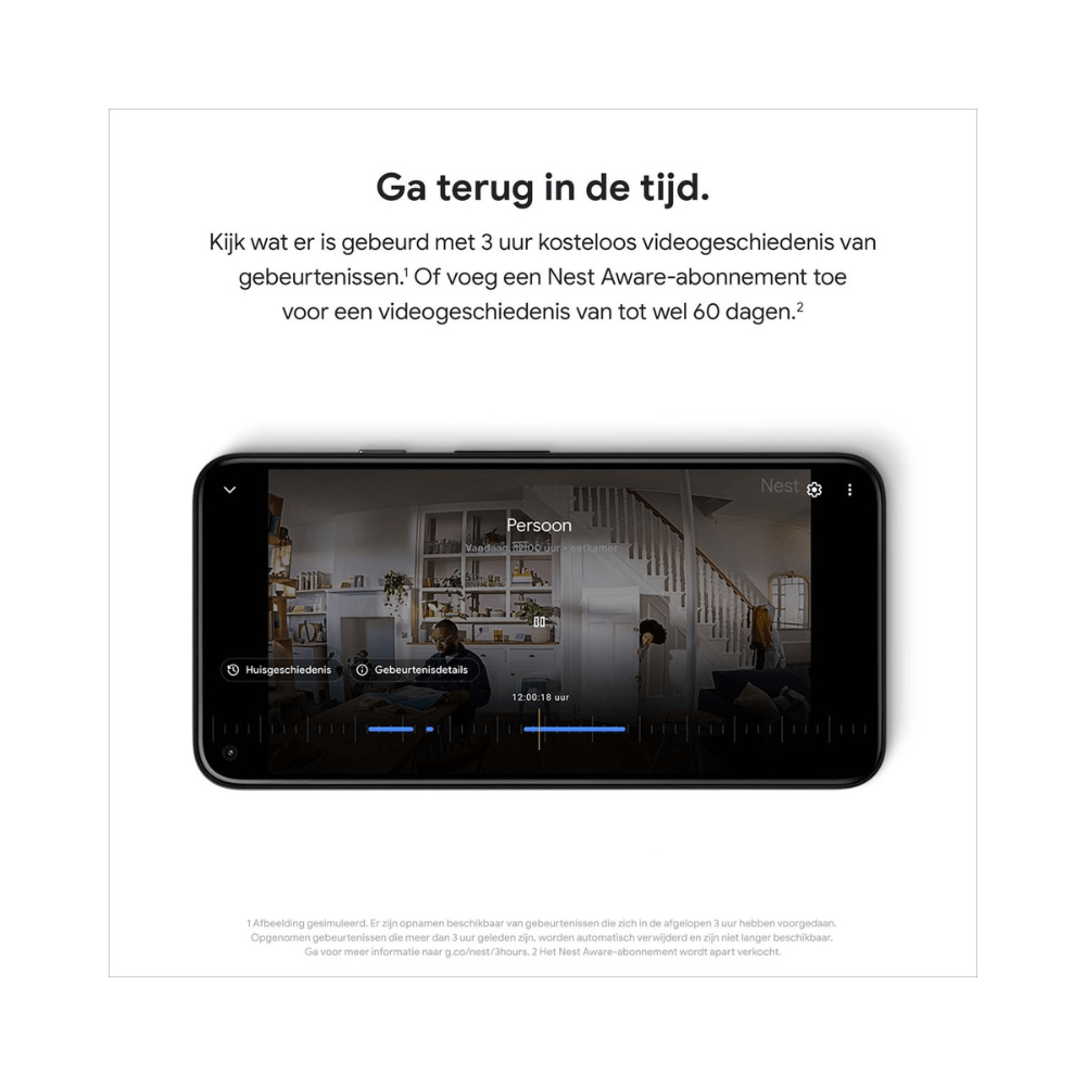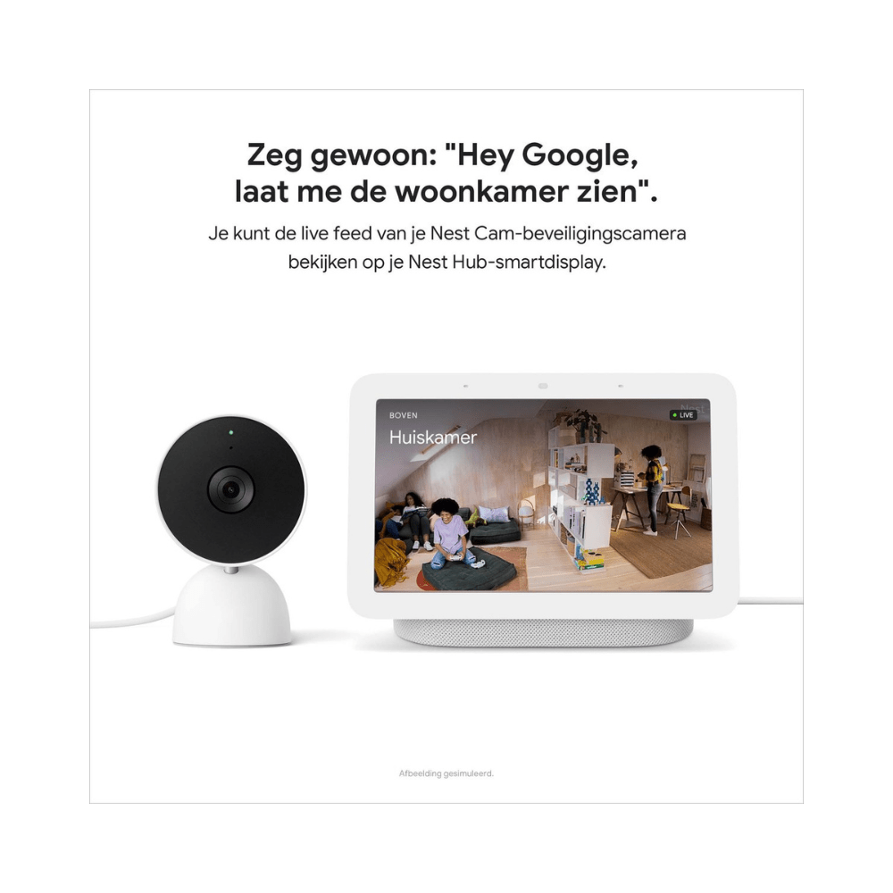 De indoor Nest Cam geeft je informatie over wat er thuis gebeurt, met ingebouwde intelligente meldingen bij activiteit. Hij kent het verschil tussen een mens, een huisdier en een voertuig en geeft alleen meldingen over wat belangrijk voor je is. Met dag en nacht live weergave heb je zicht op wat er gebeurt en kun je overal praten en luisteren via de Google Home-app. Ook kun je met activiteitszones meldingen instellen voor specifieke plekken, zodat je weet of daar iets belangrijks gebeurt. Daarnaast is de Nest Cam zo ontworpen dat hij overal past, met een tafelstandaard die je ook aan de muur kunt bevestigen.