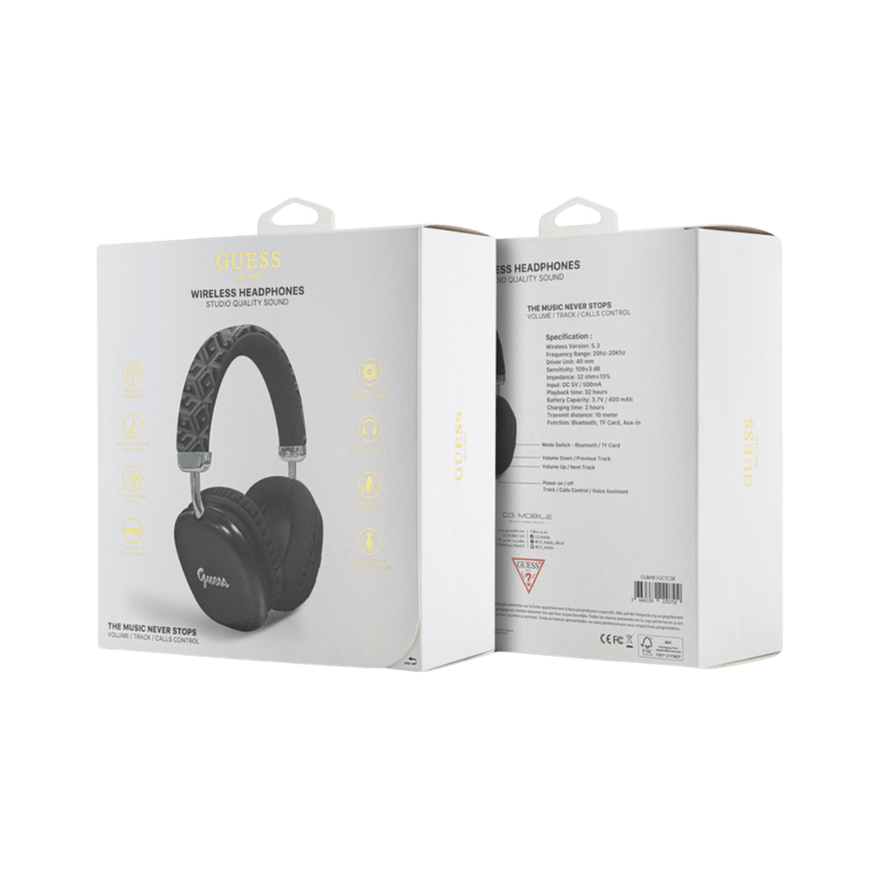 Ontworpen met oog voor detail en comfort, combineert deze koptelefoon moeiteloos luxe met gebruiksgemak. De zachte, over-ear oorkussens zorgen voor langdurig draagcomfort, terwijl het opvallende Guess-design een statement maakt.