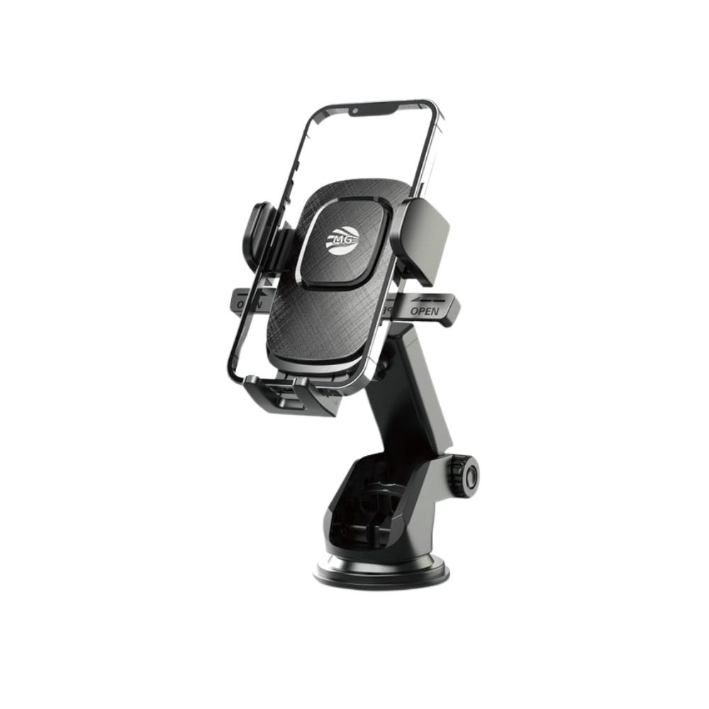 Maak veilig gebruik van de navigatiefunctie op je telefoon dankzij deze telefoonhouder van MG! De houder is gemakkelijk te bevestigen op het dashboard of de voorruit van jouw auto. Vervolgens klik je je smartphone eenvoudig in de klem van de houder. Dankzij de siliconen pads aan de binnenkant van de klem blijft jouw toestel stevig op zijn plaats en worden krassen op je telefoon voorkomen. Bovendien is de houder 360 graden draaibaar, zo heb je altijd goed zicht op je telefoon tijdens het rijden. De houder is universeel en te gebruiken met alle smartphones.