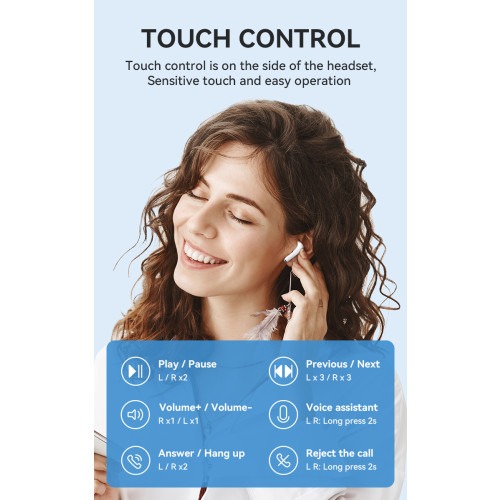 Ontdek de perfecte mix van gemak en prestaties met deze draadloze oordopjes. Dankzij de stabiele Bluetooth-verbinding verbind je ze moeiteloos met je smartphone, tablet of laptop โ zonder gedoe met kabels. De oordopjes bieden helder geluid met diepe bassen en heldere hoge tonen, ideaal voor muziek, podcasts of telefoongesprekken.