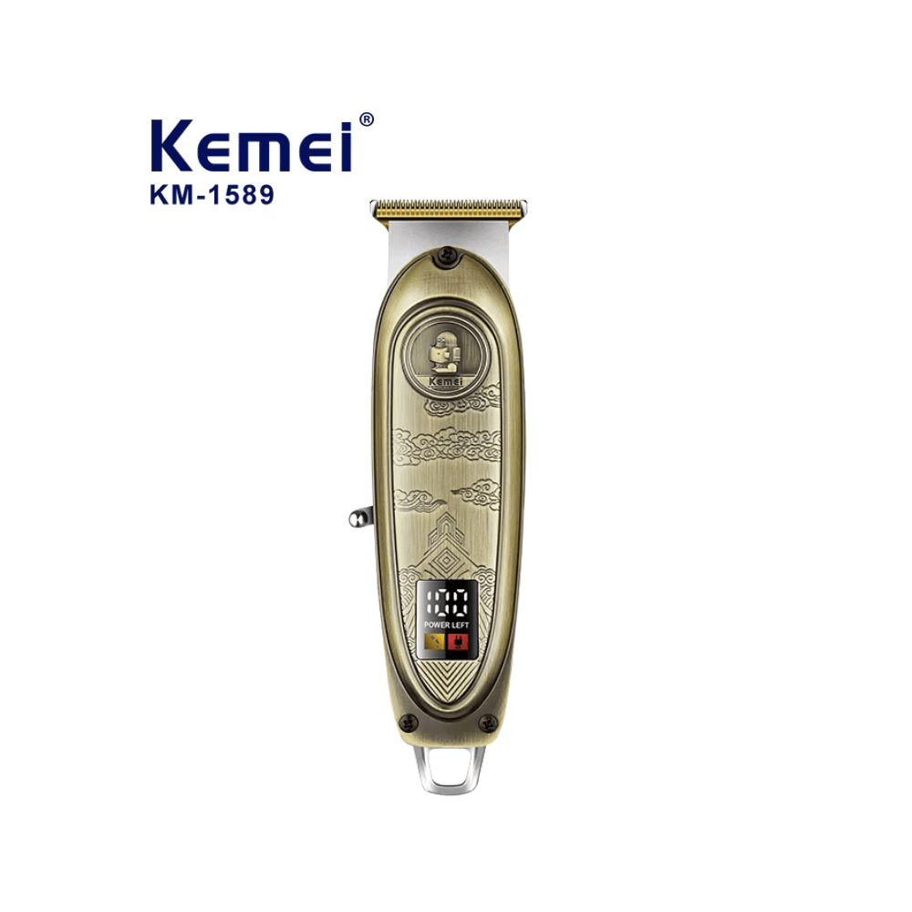 De Kemei KM-1589 is een professionele draadloze haarknipmachine ontworpen voor barbers, salongebruik รฉn thuisverzorging. Met een robuuste metalen behuizing, verstelbare snijlengtes en krachtige prestaties maakt deze tondeuse elk kapsel moeiteloos stijlvol en strak.