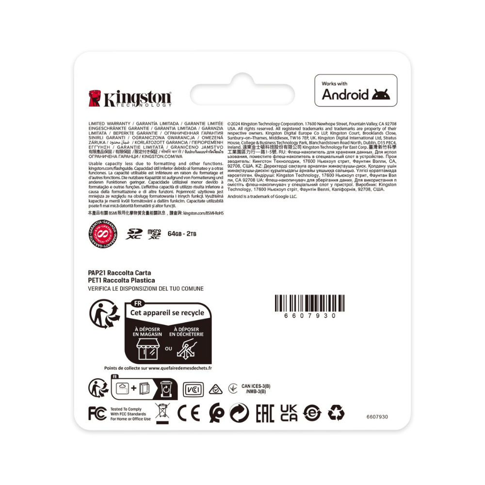 De Canvas Select Plus microSD van Kingston is compatibel met Android-apparaten en levert verbeterde prestaties van A1-klasse. De kaart biedt een betrouwbare snelheid en grotere capaciteiten tot 1TB** om apps sneller te laden en foto’s en video’s vast te leggen. De krachtige, snelle en duurzame Canvas Select Plus microSD is ontworpen op betrouwbaarheid, zodat je hem overal mee naartoe kunt nemen met de zekerheid dat je foto’s, video’s en bestanden beschermd zijn. Beschikbaar met levenslange garantie.