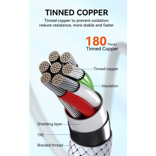 Met deze praktische Type-C kabel van 2 meter kun je zorgeloos genieten van de hoge laadsnelheden.