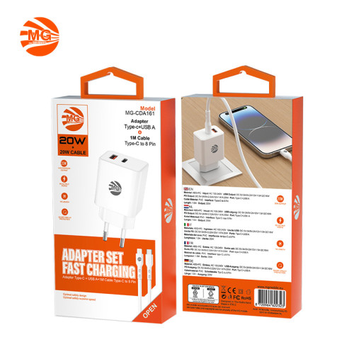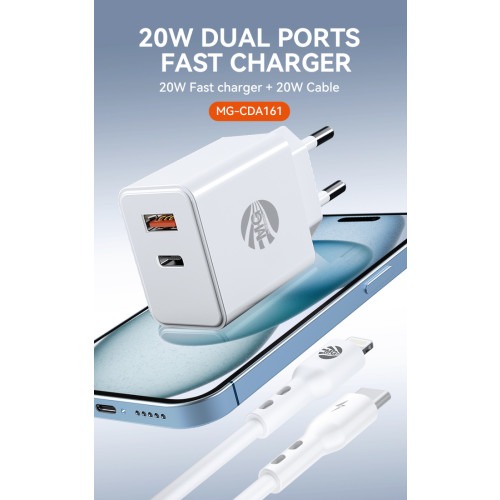 MG – Adapter Met Kabel – 30W Adapter – 20W Kabel – Super Fast Charging – Wit – 1 Poort Type C – 1 Poort USB – Met 1m Kabel