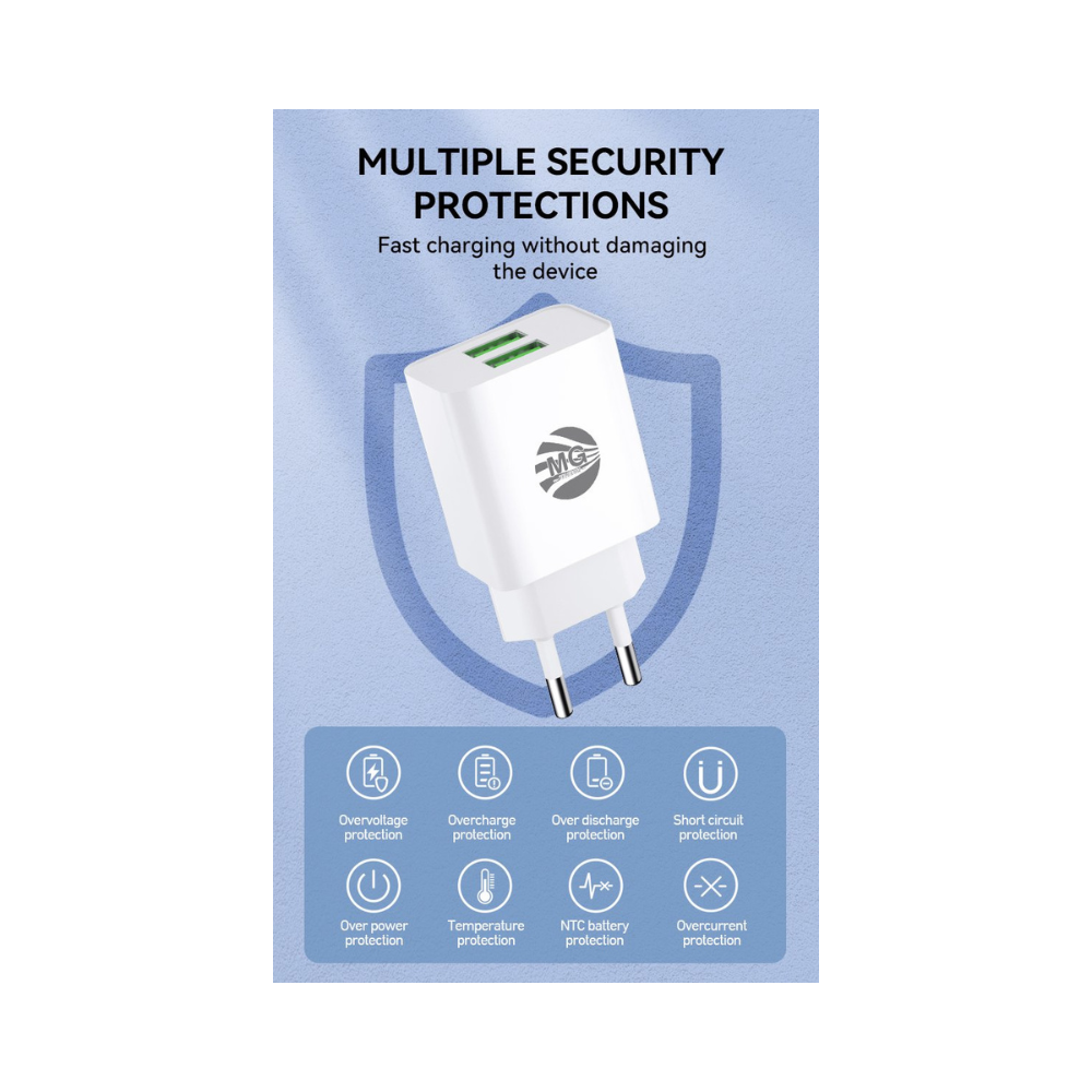 Op zoek naar een universele USB-C + Usb adapter? Een die je apparaten snel oplaadt en niet na twee weken stuk gaat? , GaN-technologie en ondersteuning voor 2,4A opladen ben je verzekerd van de beste USB-C + Usb adapter. Met deze adapter van MG kun je jouw smartphone, tablet, oortjes en zelfs laptop opladen. Deze adapter is universeel en kan met verschillende merken worden gebruikt.