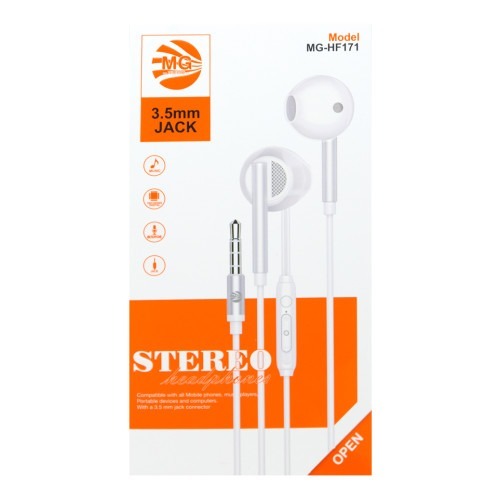 MG Oortjes โ€“ Earphones met 3,5 mm Jack Aansluiting โ€“ Hoge Geluidskwaliteit โ€“ Wit โ€“ Model HF171