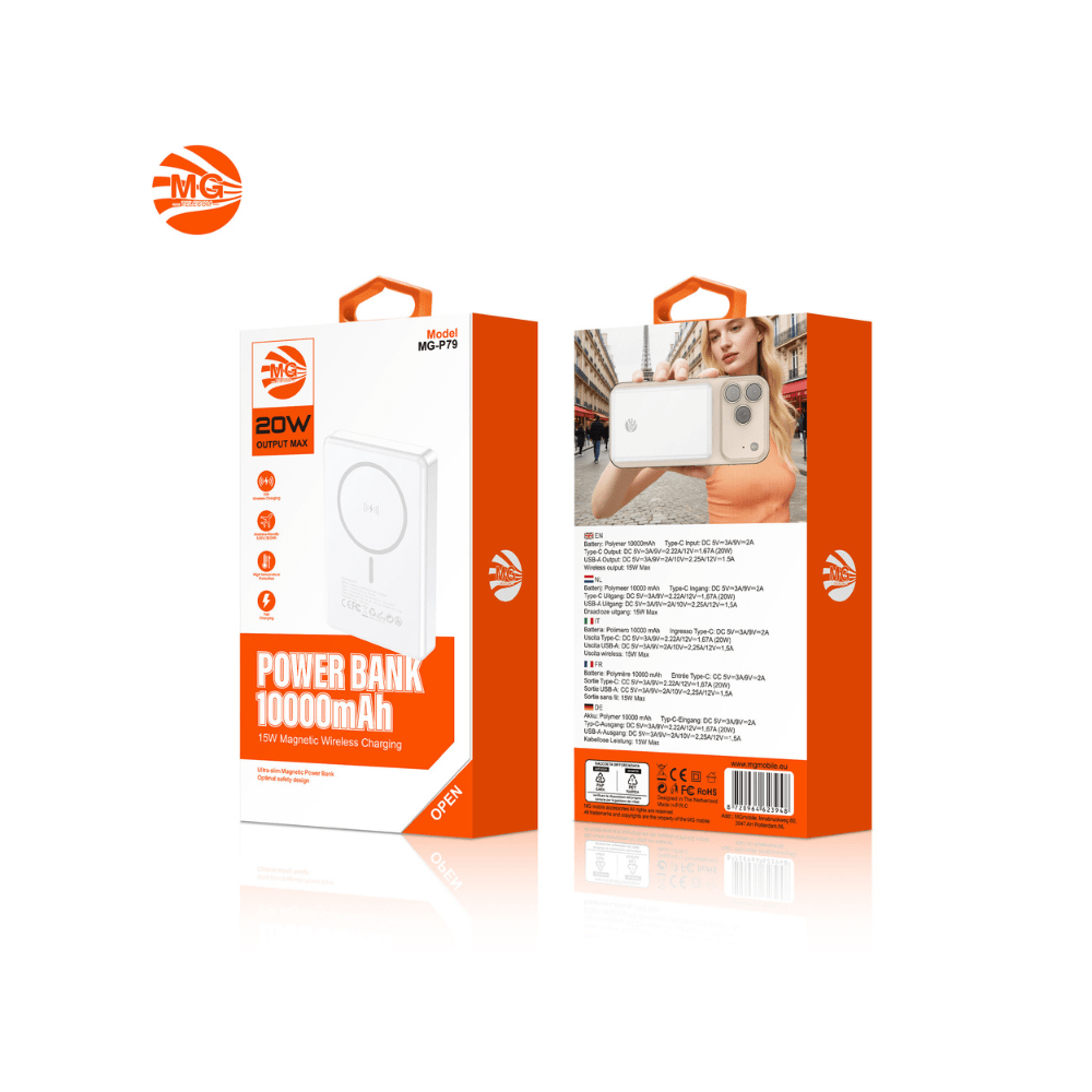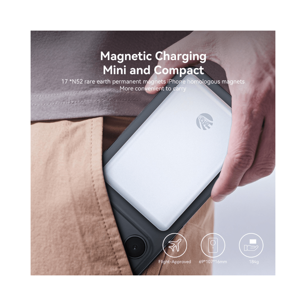 Blijf altijd en overal bereikbaar met deze krachtige 10000mAh powerbank. Dankzij de sterke magnetische bevestiging klik je jouw compatibele smartphone eenvoudig vast voor stabiel en efficiรซnt draadloos opladen tot 15W. Ideaal voor onderweg, op reis of tijdens een drukke werkdag.