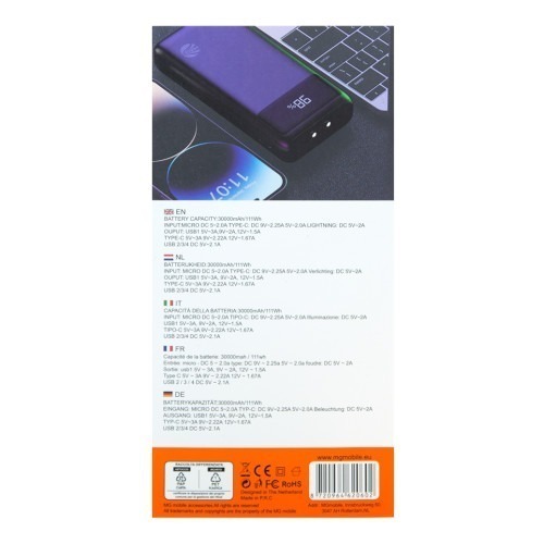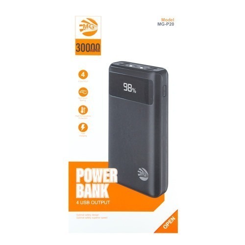 Blijf altijd opgeladen, waar je ook bent! De MG-P20 powerbank met een enorme capaciteit van 30.000mAh is ideaal voor lange reizen of intensief gebruik. Dankzij vier USB-uitgangen kun je meerdere apparaten tegelijk opladen. Voorzien van snel opladen, hoge temperatuurbescherming en een robuust design, is dit de perfecte partner voor onderweg.