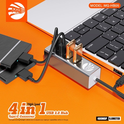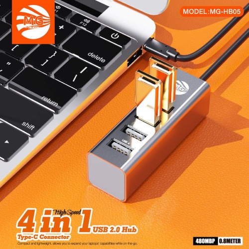 Deze MG Type-C 4-in-1 adapter biedt vier USB 2.0 poorten, ideaal voor het aansluiten van meerdere apparaten via รฉรฉn Type-C poort. Met een overdrachtssnelheid tot 480Mbps kun je eenvoudig data overzetten of randapparatuur aansluiten, zoals muizen, toetsenborden, flashdrives en meer. De adapter heeft een kabellengte van 0,8 meter en is compact, waardoor hij gemakkelijk mee te nemen is. Perfect voor laptops, tablets en andere apparaten met een Type-C poort, en zorgt voor naadloze connectiviteit in elke situatie.