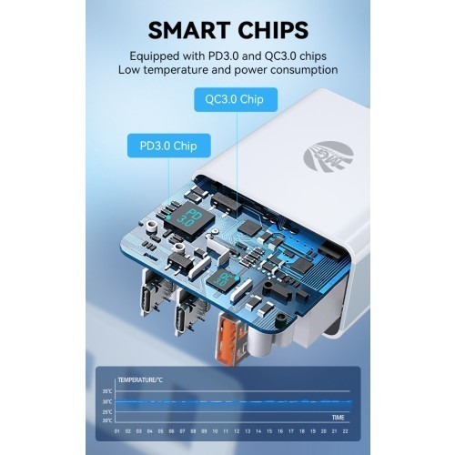 Op zoek naar een universele USB-C + Usb adapter? Een die je apparaten snel oplaadt en niet na twee weken stuk gaat? , GaN-technologie en ondersteuning voor 2,4A opladen ben je verzekerd van de beste USB-C + Usb adapter. Met deze adapter van MG kun je jouw smartphone, tablet, oortjes en zelfs laptop opladen. Deze adapter is universeel en kan met verschillende merken worden gebruikt.