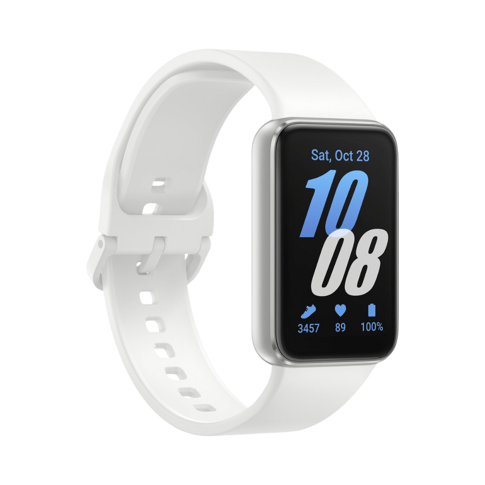 De Samsung Galaxy Fit3 Activity Tracker kan tot 13 dagen mee zonder op te laden. Je voelt nauwelijks dat hij om je pols zit, houdt meer dan 100 work-outs en dagelijkse activiteiten bij, waaronder slaap. Speel muziek af, kijk wie er gebeld heeft en stuur berichten vanaf je pols โ blijf helemaal op de hoogte, verbonden en moeiteloos op schema met de Galaxy Fit3.